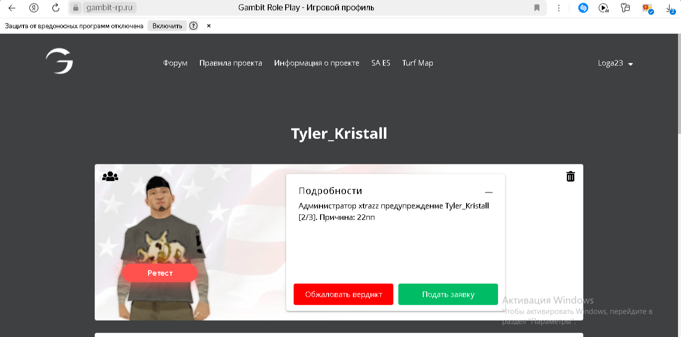 Суть жалобы: за что ты мне выдал 22пп где тут зеленая зона, это клуб, а я охранник так то и успокаивал драки ЗА ЧТО ВАРН, фрапс требую и скорейшего снятия варна