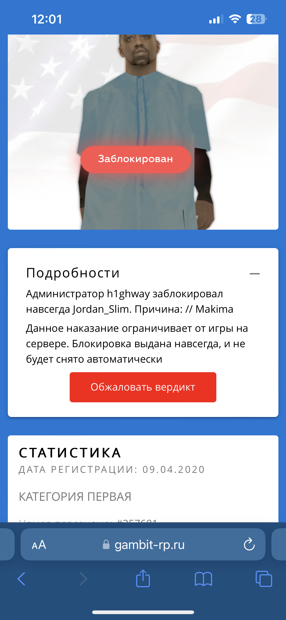 Суть жалобы: привет, вчера бан получил перманентный от тебя, можно узнать причину? ты ее не указал