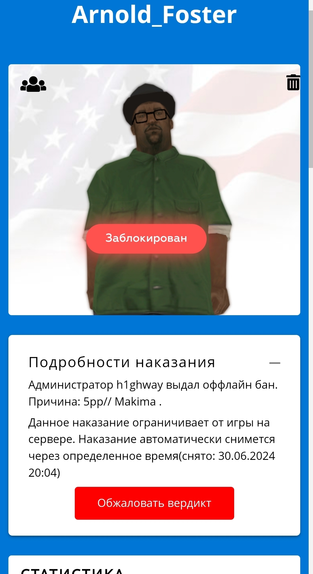 Хочу описать ситуацию что я со своим сообщником в ходе угона мотоцикла забежали в дом от полиции, они зашли сразу же за нами, мой сообщник позже сказал мне что побежал в подвал, я хотел за ним, но перепутав случайно нажал на посмотреть в глазок и меня через секунд 10-20 выбросило с сервера, по причине краша игры, я специально не оффался, после я перезахожу и у меня вылезло в чате что ваши настройки спавна были рассихронизированы и я заспавнился в доме у друга.Я спросил у своего сообщника что мне делать? Он сказал что тоже вылетел и написал чтобы я ждал,он написал чтобы его тпнули обратно на что ему ответили "в час пик не тпаем". Я в это время вышел из дома в который меня обратно откинула система сервера, и оказался на улице Гантон, пошёл к толпе в которой заметил знакомых мне людей с которыми сегодня уже поиграл и закентился, и меня тпнул админ чтобы я доиграл ситу. Я всё доиграл с ламаром у нас забрали оружие и щас смотрю меня забанили. Мы же всё доиграли, пушки тоже потеряли, зачем тогда выдали бан за отказ от игры? Снимите если можно бан хотя бы на 1 раз , я не спорю что я сделал неправильно потому что мне тоже надо было попытаться хотя бы попросить тп нуть меня обратно, мне понравился сервер и я хочу снова тут поиграть без ограничений, если получится то буду рад снятию бана в любом случае оружие уже потеряно, его забрали полицейские,