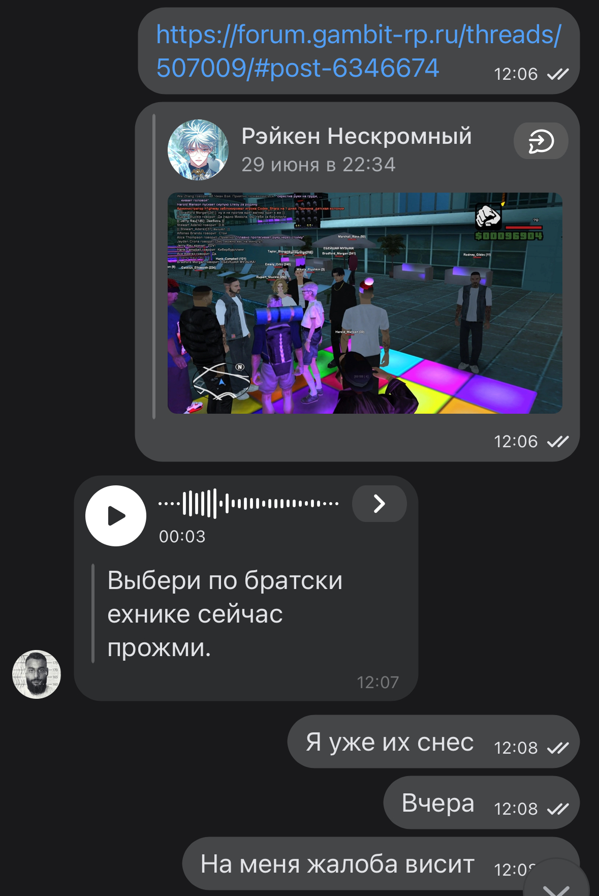 Ссылка на доказательства наказания/нарушения: https://forum.gambit-rp.ru/threads/507198/