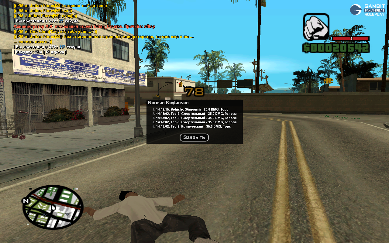 Суть жалобы: cтоял у машины, тип влетает в моё авто на тахоме, я встаю, оттягиваю авто в другое место, тип подьезжает, и начинает хуярить меня с тек9, отыгровки не увидел с его стороны никакой абсолютно