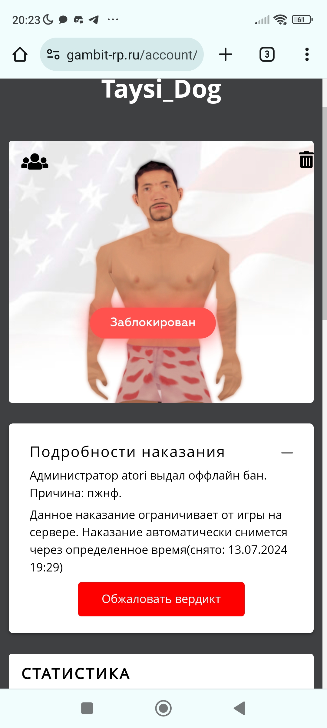 Тогда уже и другого участника ситуации, что от него убегал, амнистировать нужно. Оставляю это на твоей совести, решишь - закроешь )@atori in law, солнышко, давай амнистируем этого парня? Если нарушит повторно, то ответит по всей строгости.