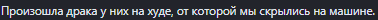 Ситуация такова. Произошла драка у них на худе, от которой мы скрылись на машине. Зачем-то к нам в машину запрыгнул их товарищ и отыграл, что включил геопозицию, дав своим корешам возможность нас по-ней вычислить. Я у него отжал телефон и выкинул в окно.