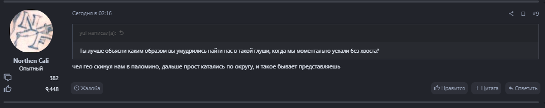 Оторвались и приехали к одной из деревень, от которой и до Вентураса недалеко, но каким то чудесным образом они нас нашли. Как ответили ранее, им скинул гео, когда мы были в паломино, наплевав на то, что мой товарищ отыграл, как забрал телефон. Возможно и вправду он просто скинул гео, но если посмотреть ситуацию с дракой и на ту, где нас убили (они прикреплены в первом посту), то похоже на игру по дискорду.