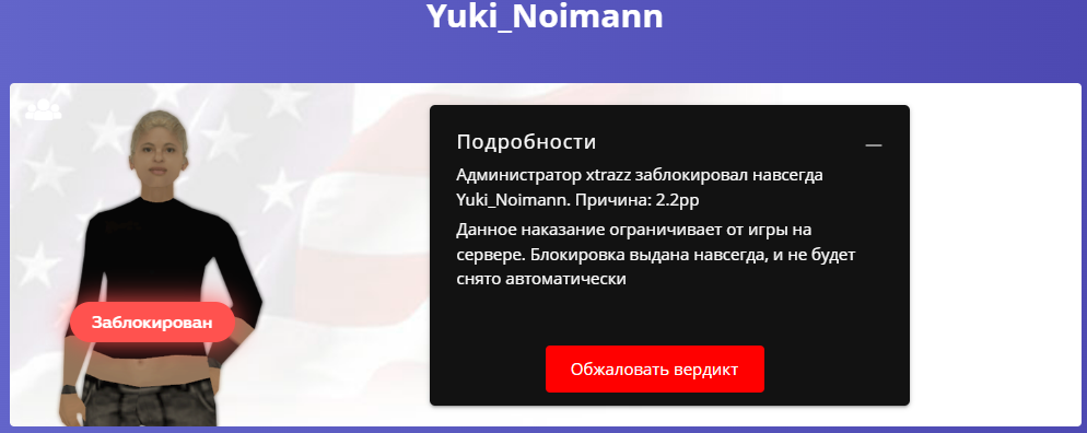 И-так, после этого почти сразу прилетел бан за ПП 2.2. Админ, я прекрасно понимаю что ты хочешь меня поругать за "ПГ", но, чёрт возьми, моя и-так сама по себе та ещё непонятная и смелая дева что ещё под градусом. К тому же в анкете я указывал не самое лучшее состояние жизни, которое включает в себя многое. Или правило про "плохое детство" работает лишь на чернокожих персонажей с гетто? Просто мне интересно то, почему мой персонаж не мог в момент "меньшего внимания" просто удрать восвояси, при этом имея реальные шансы выжить?