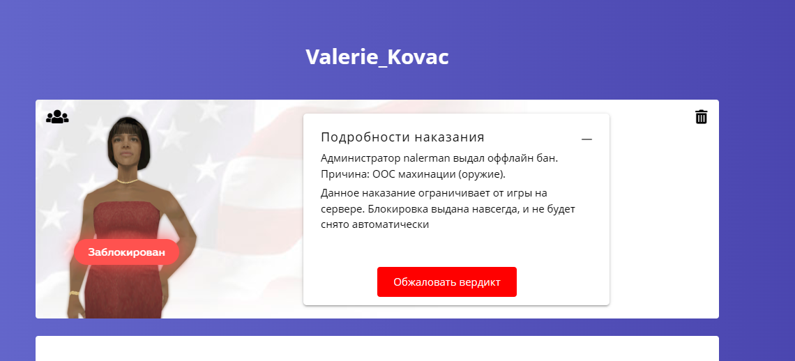 Суть жалобы: забанил за оос махинации с... оружием?