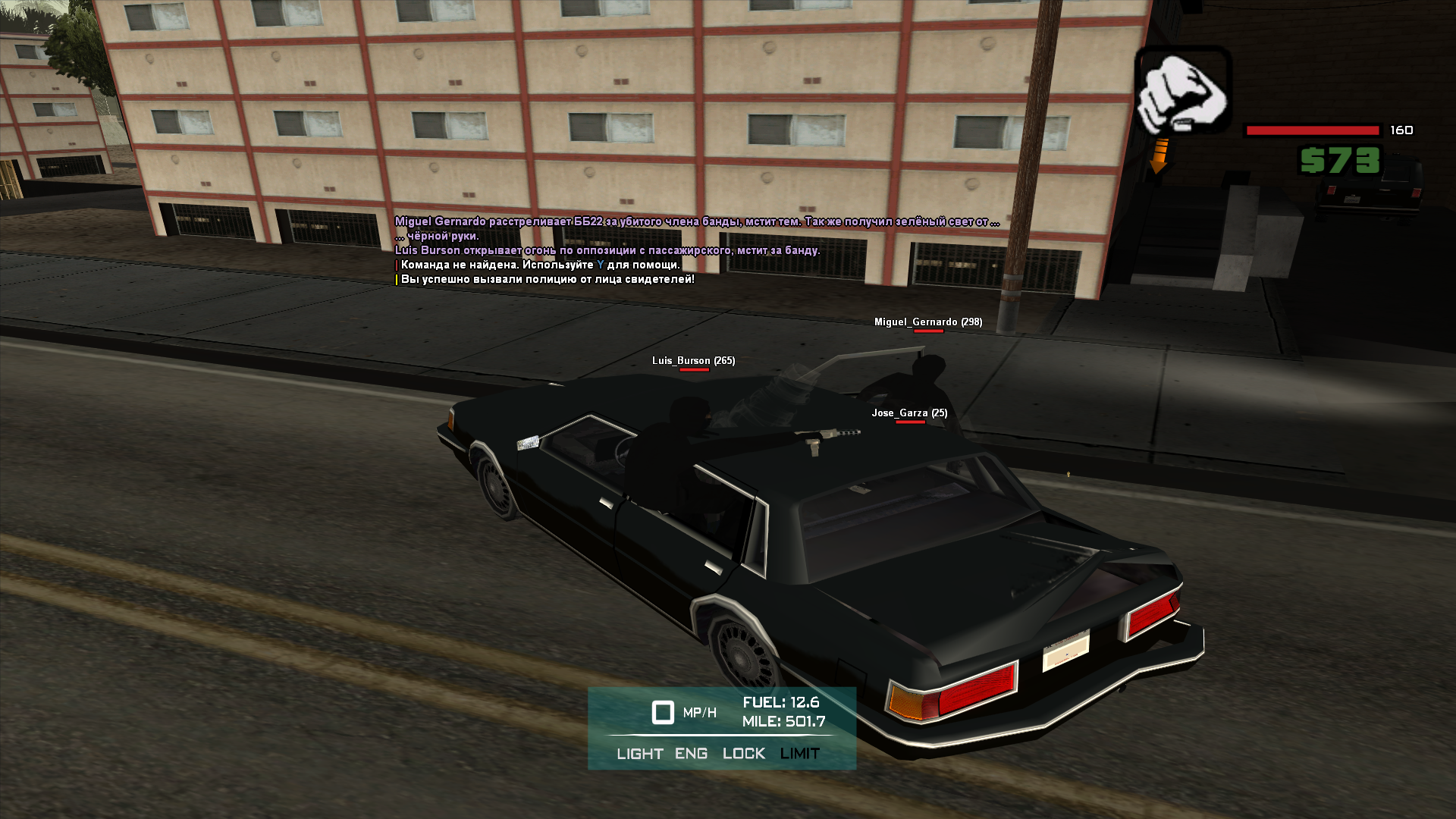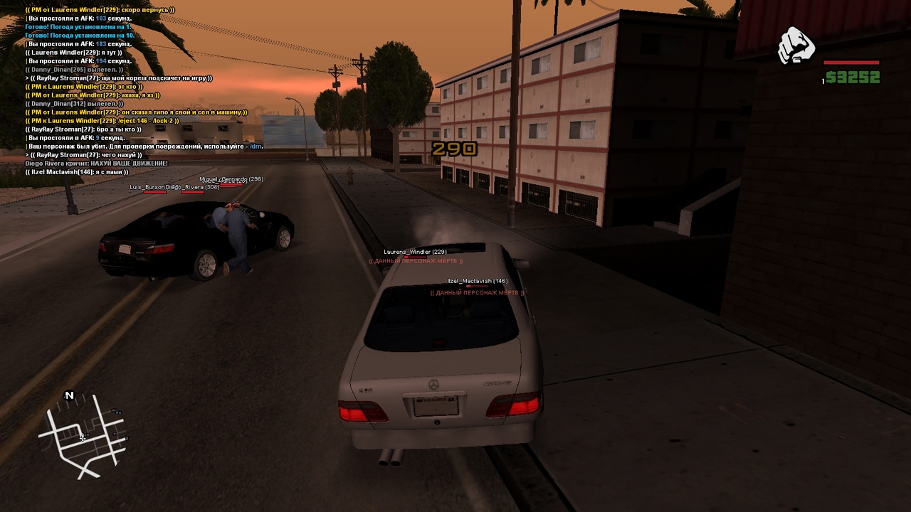 И это за весь текст. Удачи переписывать жалобу. Распишу все достаточно в кратце. Вчера вечером, произошло убийство участника банды ~> Casto `Phantom` Blanco, персонаж, который в айси подвязке состоит в банде около трех лет, что уже делает его ветераном банды. Естественно, банда такого не выдерживает. Были обыграны последствия, сделан мемориал в честь умершего, обыграны похороны, к справке. Далее, через несколько минут, в спотте Гизмо собрались ходовые участники банды, которые зарядили себя оружием до зубов, оделись в костюмчики и приготовили авто. Катаемся около вашего худа, шерстим абсолютно весь район. Далее, проезжая возле вашего худа, замечаем машину, предположительно участников-аутсайдеров бордер бразерс. После того как вы выехали с худа, мы погнались за вами, открыли огонь, можно сказав, разменявшись с оппозицией убийствами.