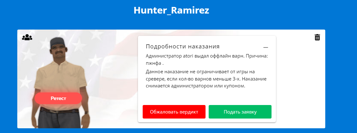 Ссылка на доказательства наказания/нарушения: варн