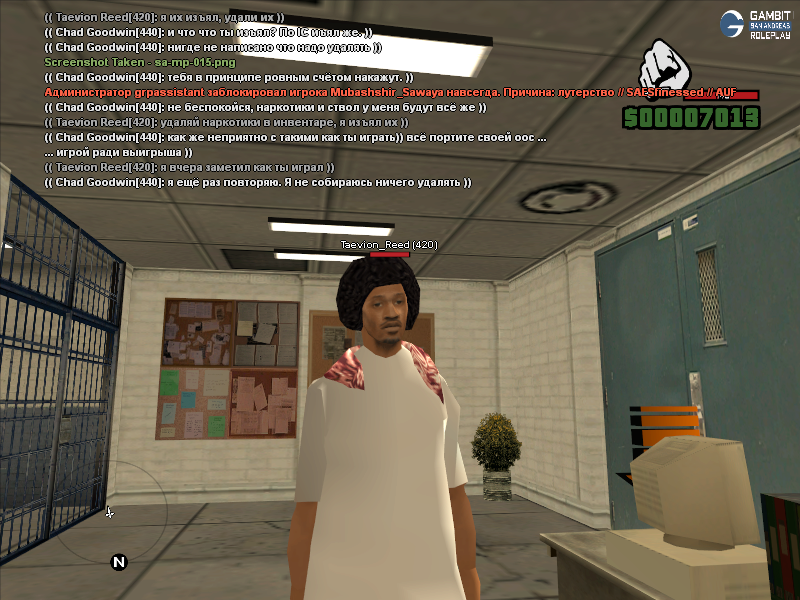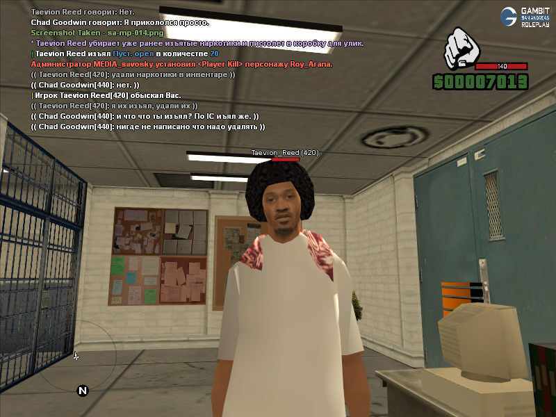 Суть жалобы: отказ от игры, после отыгрыша с изъятием смог изъять один предмет, а наркоту нет. попросил игрока по доброму удалить, тот лишь сослался на то что не обязан хотя всё обыграно. Передавать предметы я себе не просил, потому что это наказуемо правилами саес. После отказа сказал что меня накажут за это