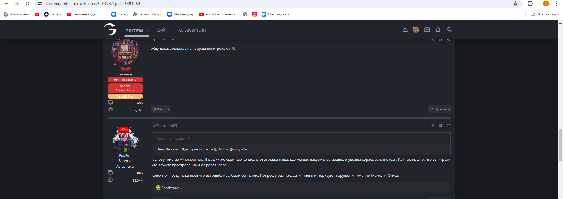 9 пункт, думаю можно закрывать уже жалобу, можете даже чекнуть по логам, ибо вся эта ситуауция была в субботу и жалоба фосфора на Дахила была написана, а щас уже давно не субботка