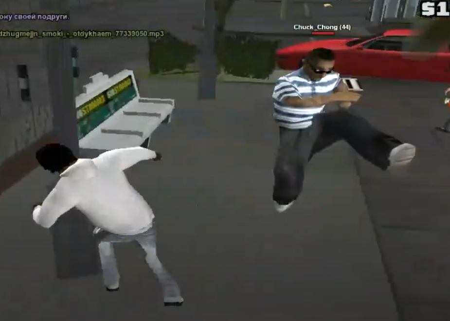 я стою, как вдруг на меня нападают какие то сексуально озабоченные люди являющиеся игроками различных около цивил площадок типа такой где этот пацан и играл. прошу заметить проверяющему жалобу, что игрок на фрапсе заготовил отыгровку заранее и напал на меня. я просто отшёл в сторону, спровоцировав противника идти в решительную атаку подготовив все возможности для выгодной мне драки.