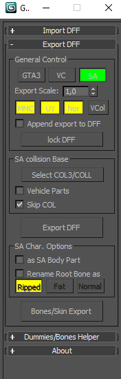 все текстуры самостоятельно накидываю на сжатомРазмер ДФФа скажи после выгрузки, если он меньше двух мегабайт, значит заходишь в тхд файл маппинга и смотришь нет ли там текстур в формате PAL. Если есть - изменяешь формат на сжатый или стандартный.
