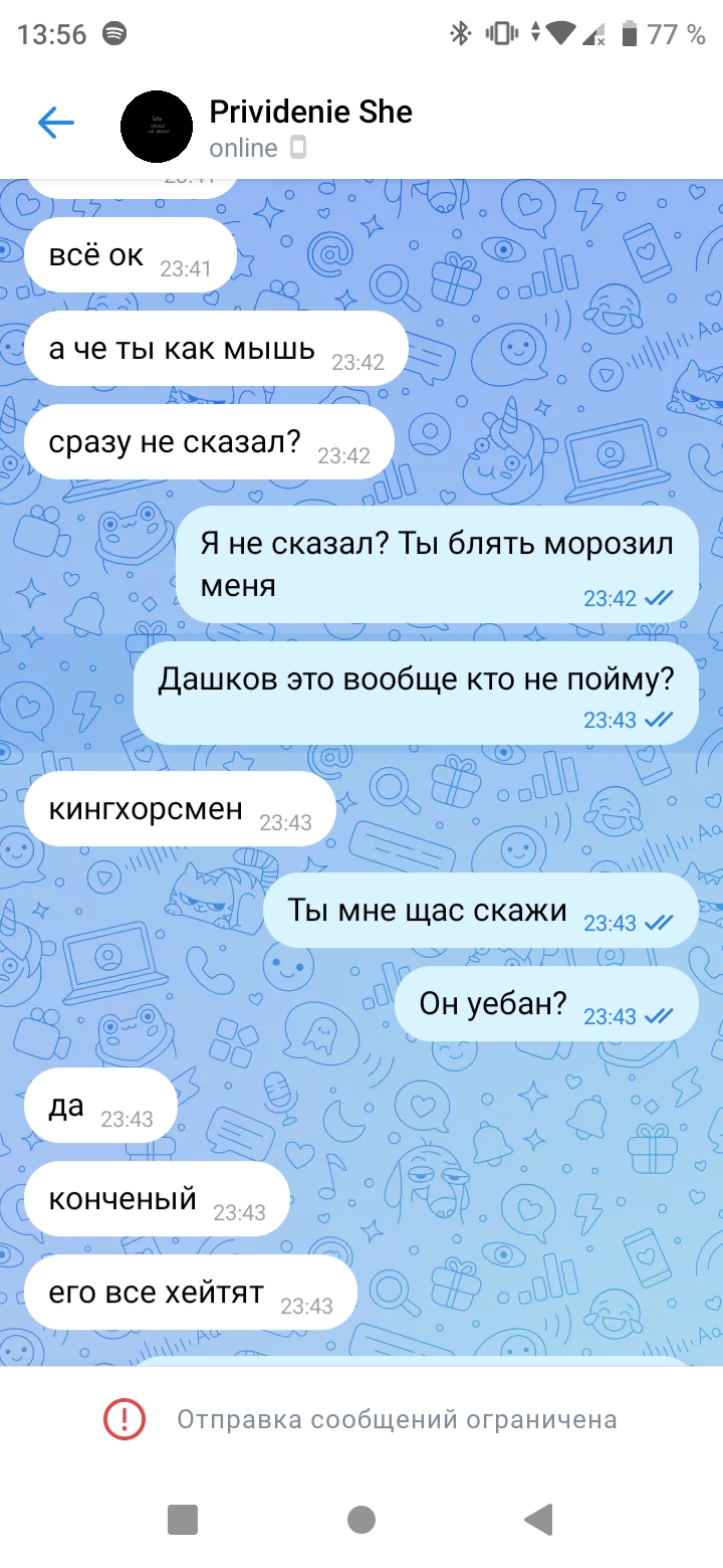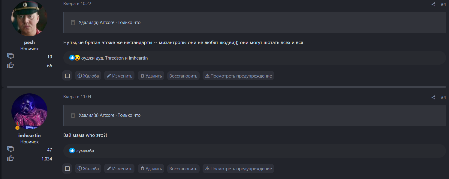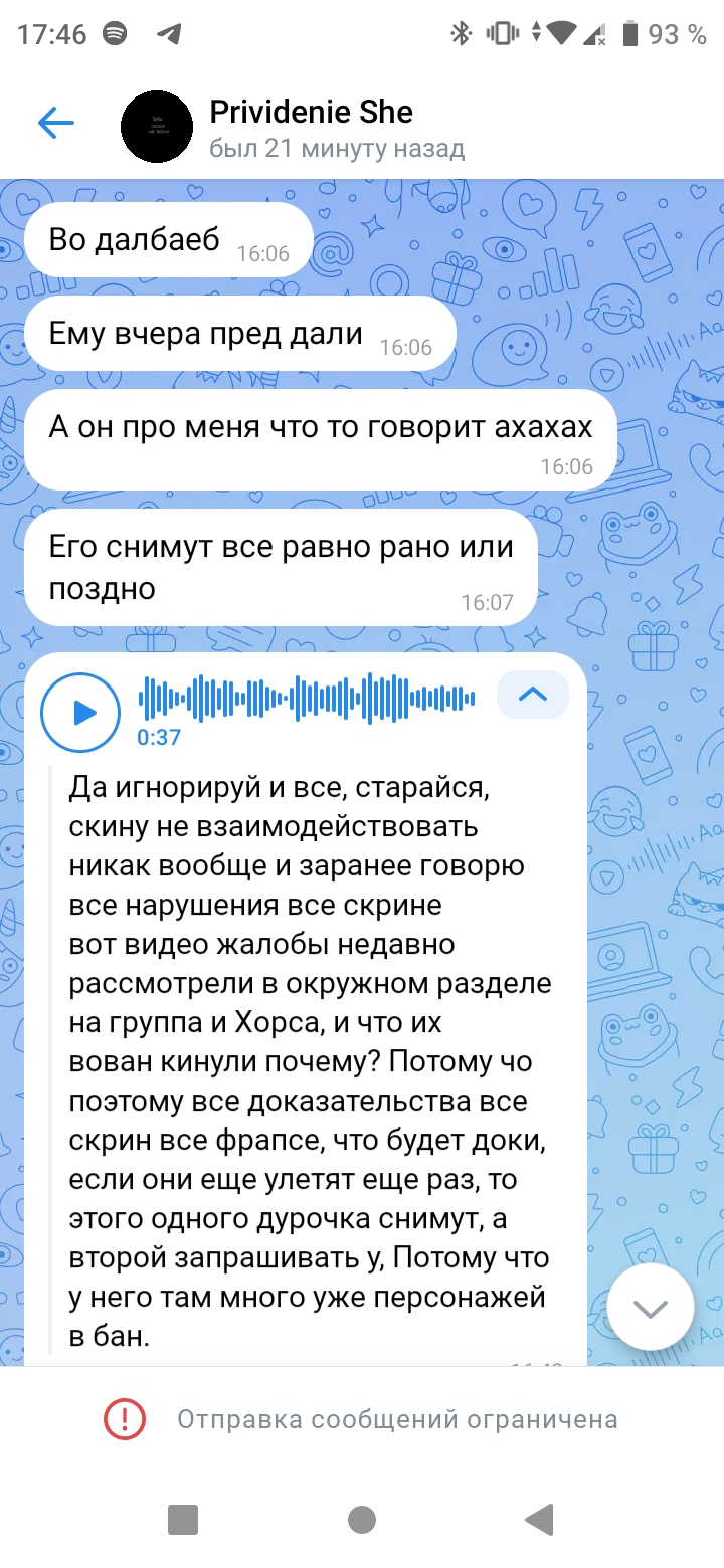 Кинул топик фракции округа в архив за "копипаст" при том что я ему все пруфы дал но ему было лень разбираться во всём и кинул меня в чс вк, перед этим он мне херь в вк написывал но тоже почистил.