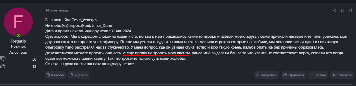 16. При проверке жалоб администратор имеет полное право проверить вашу квенту на соответствие вашей роли и вашим действиям