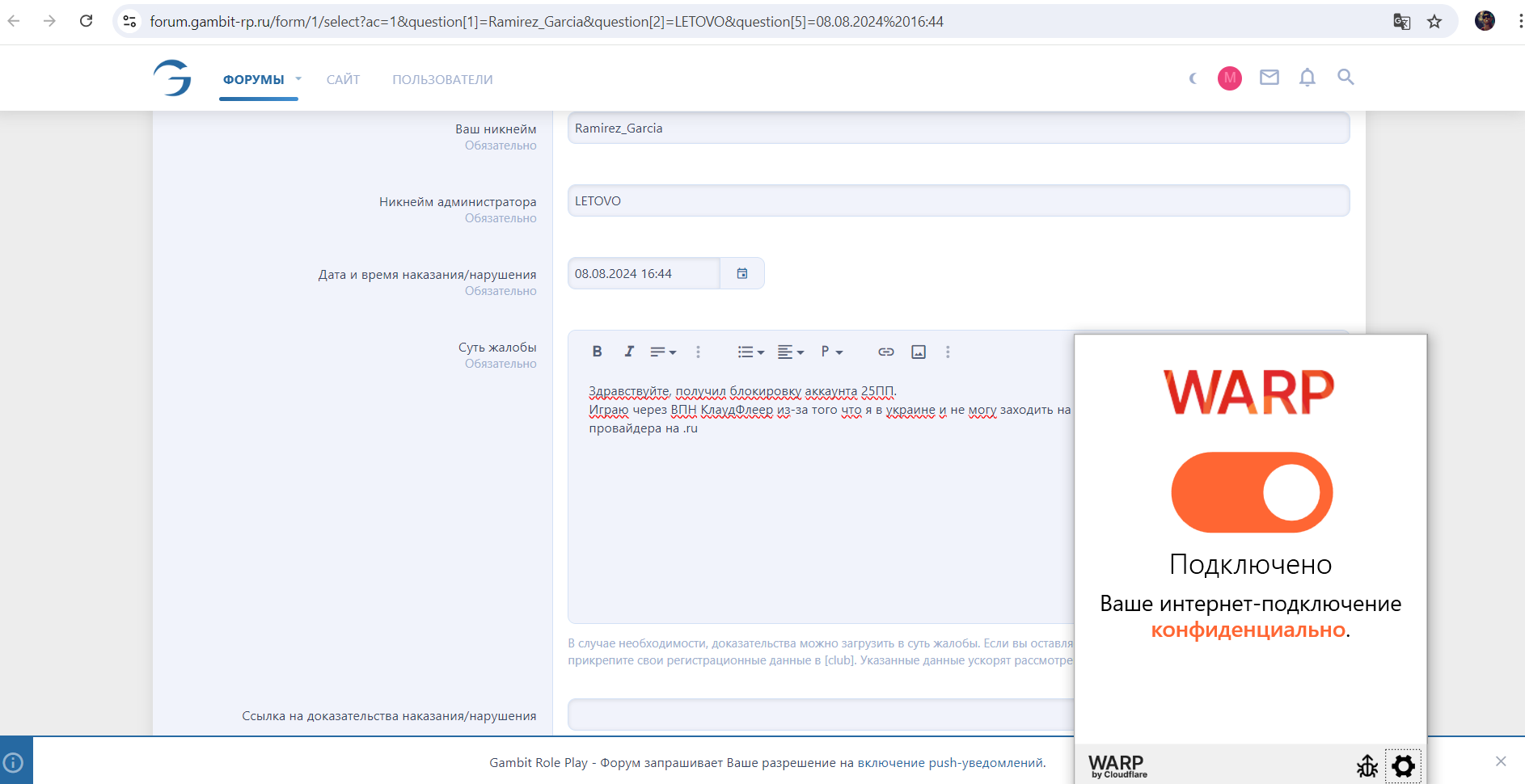 Играю через ВПН КлаудФлеер из-за того что я в украине и не могу заходить на сайт и на сервер из-за блокировок провайдера на .ru