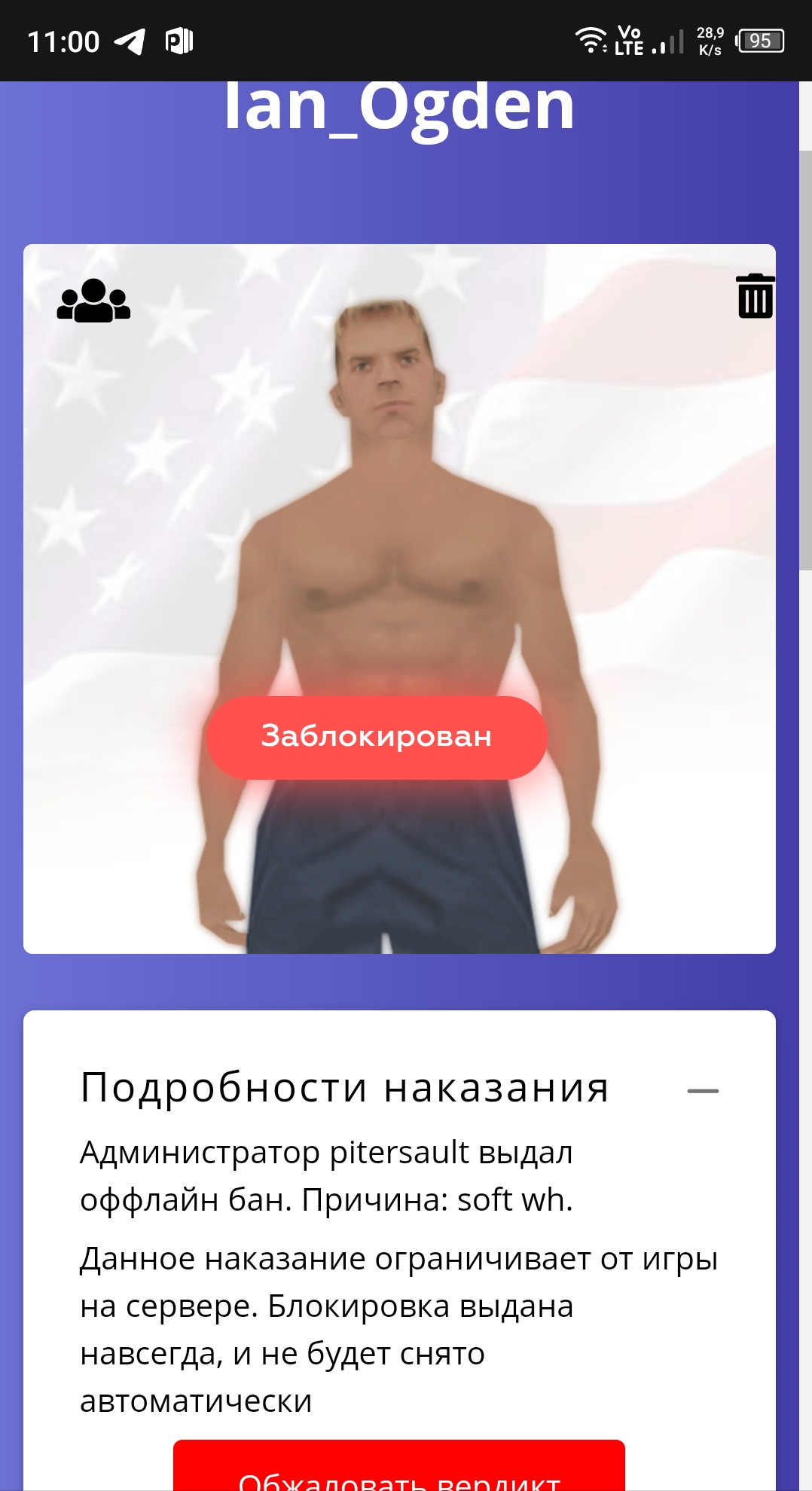 Я не буду прикладывать док-ва по твоей игре в са-ес структуре. Ты написал жалобу конкретно по выдаче блокировки.