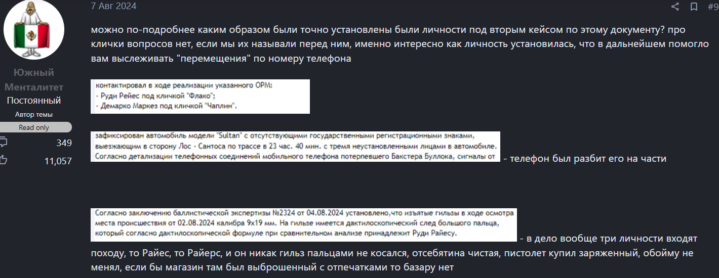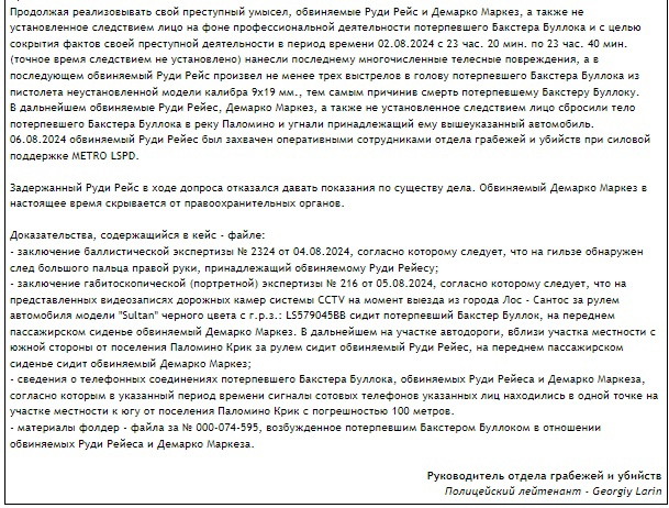 Мне передают как адвокату этот кейс, как опытному бывшему СА--ЕСру, я его читаю, понимаю что тут полная шляпа и много ООС моментов которые нужно перепроверить и тут я выясняю, что отпечатки нарсиованы в пользу детективов, хотя пруфы на это они не предъявили. В место пруфов они посоветовали самому предъявить скриншоты где рудик НЕ ЗАРЯЖАЕТ свой пистолет по пульке. Рудик сказал что не обязан, но итог вы знаете, его аргумент не приняли и как опущенного послали нахуй на форуме, закрыв все его жалобы.
