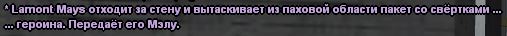Mathew_Brooks и Lamar_Klebitz, имея место игры, т.е. свой худ, совершенно в другом месте, которое расположено далеко от нас, зачем-то приходят к нам и портят всю атмосферу своими нелепыми и смехотворными выкриками, которые видны в чате "Отдел по борьбе с наркотиками..." и "ЛОВИ ЕГО! НА МЕСТЕ! ИМЯ ФАМИЛИЯ!"