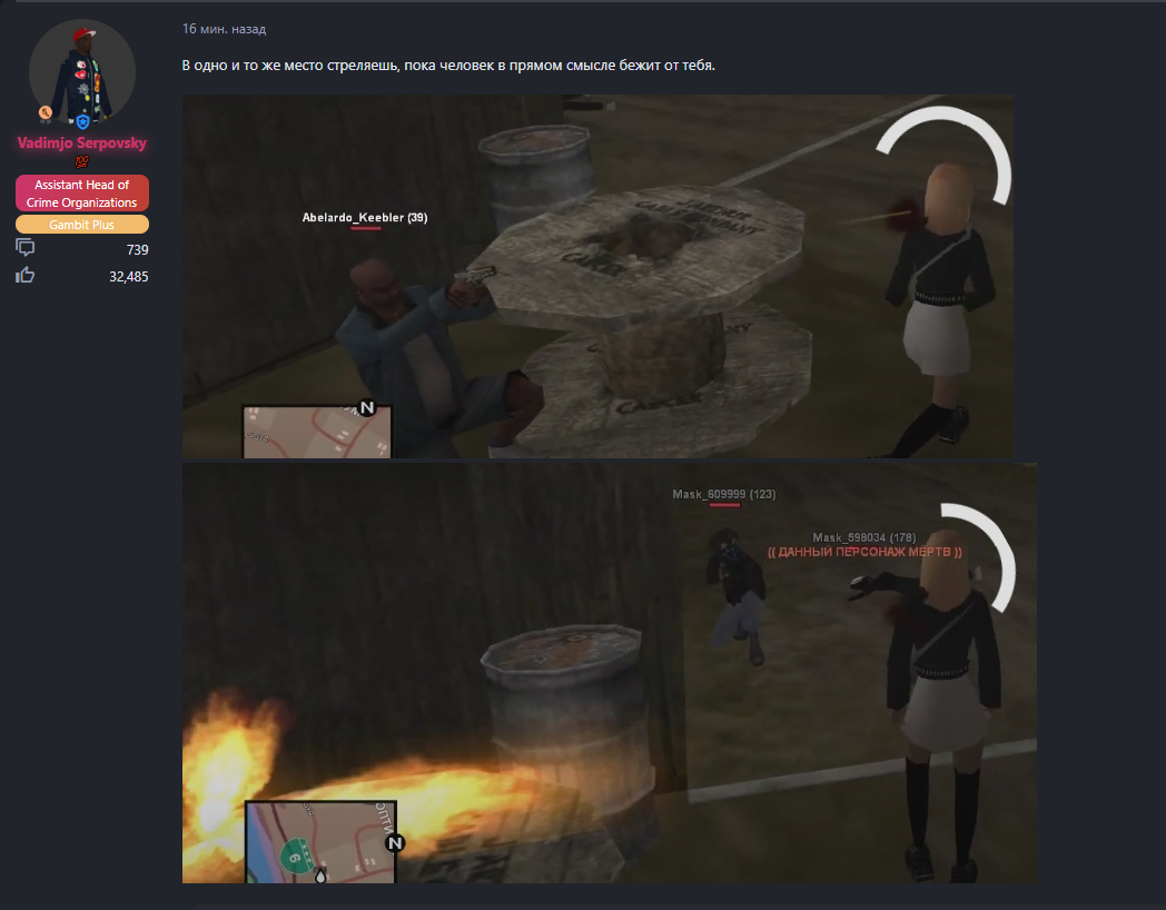 Ссылка на доказательства наказания/нарушения: https://forum.gambit-rp.ru/threads/515214/