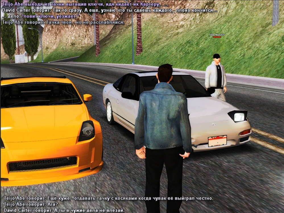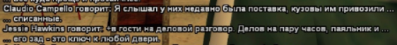 - на первом скрине можно заметить как мы с Картером стоим где-то в стороне от всех, плюсом к нам подходит Бланко и просит позже посмотреть его подвеску. на втором уже видно как Картер затирает про ДеВеру, про старый город и магазин Спидзоновцев, вернее про контору.