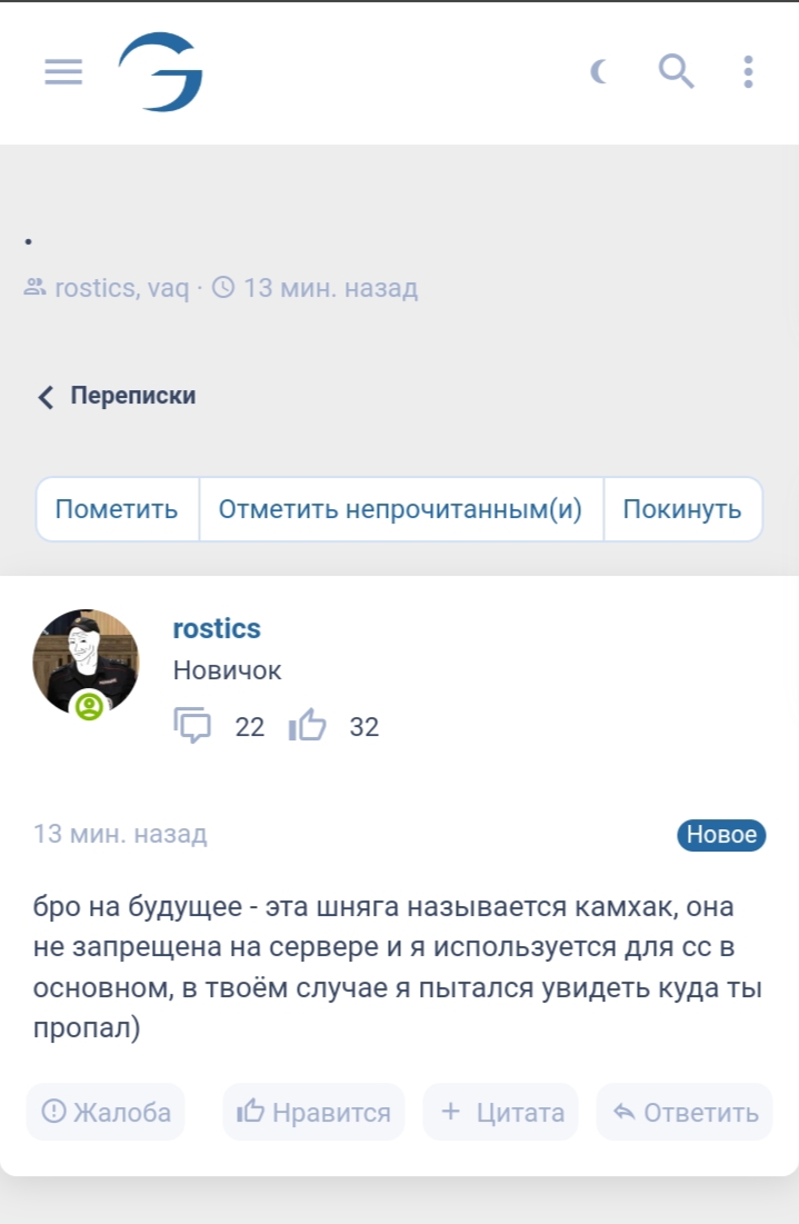 Суть жалобы: Суть такова: данный игрок кинул на меня жалобу, мол ливнул от игры во время погони хотя я понятия не имел то что они гоняться за мной, щас не про это, а про то что он в конце фрапса спалил шнягу отделением камеры, делаю вывод что по ней они меня находили, он использовал эту штуку в свою пользу