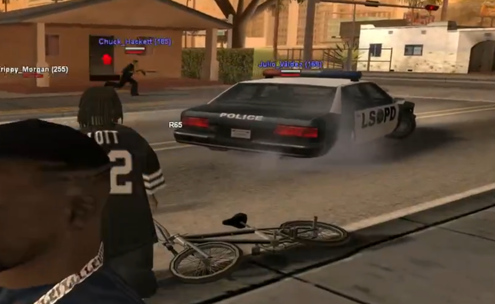 Мне интересно, по какой стратегии двигался обвиняемый игрок Chuck Hackett, сместившись из одной точки Айдлвуда в другую, вплоть до моего дома, и узнав, что я нахожусь там? Все бы ничего, но меня кикнул античит, когда я пытался сесть на велосипед при побеге. Зайдя сразу же в игру, я оказался в своем доме, откуда выйдя - увидел следующую картину. Вот на этом моменте у меня в голове не складывается такая хуйня, честно. Пробить по МДЦ и приехать в дом, взять в штурм, даже не зайдя внутрь? Но кто так делает при погоне, когда ты теряешь саспекта, лол? Можно ссылаться на то, что дом находится близко с тем местом, где по мне сначала стреляли. Однако еще одно большое "НО". На момент кика с сервера за античит я не находился в своем доме. При заходе я тоже не видел, что кто-то бы у меня стоял дома. Поэтому жду логического объяснения.