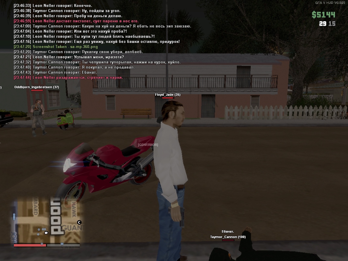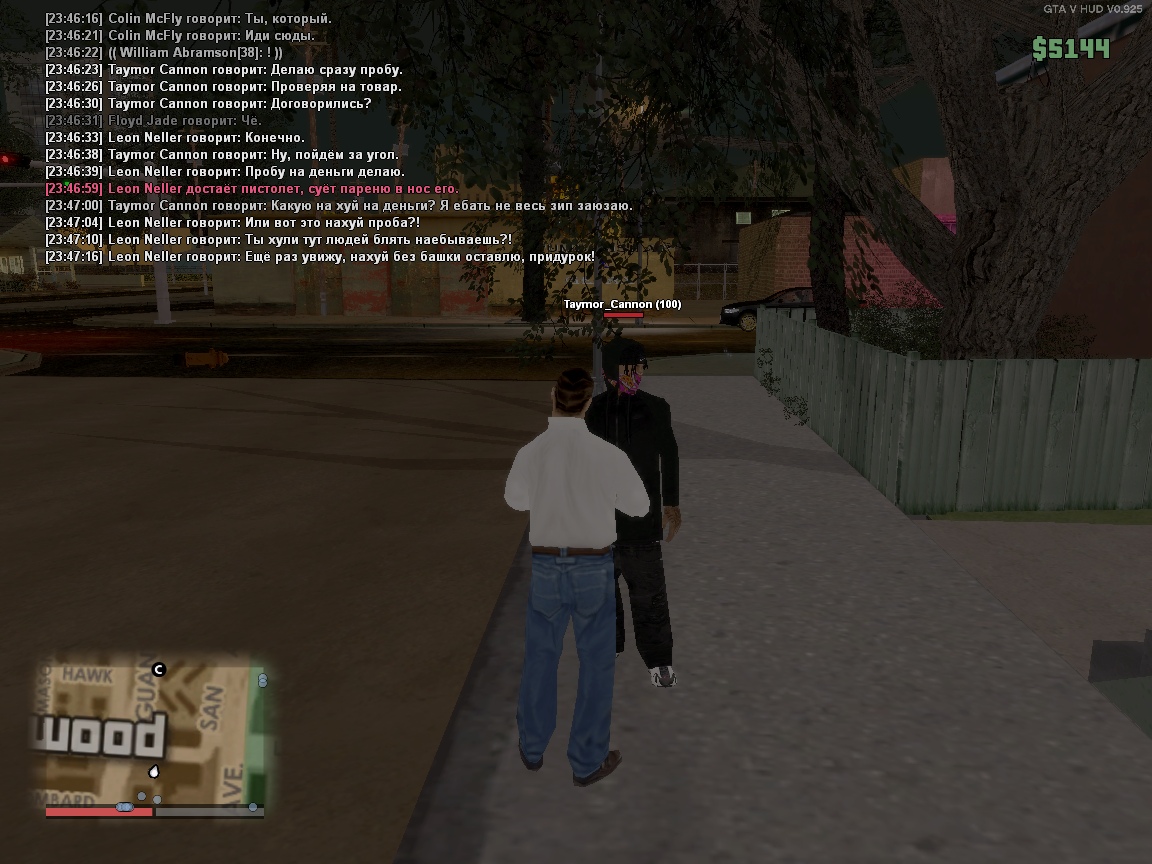 Далее начинается пожестче. Мой персонаж достаёт пистолет и суёт его парню в лицо, на что тот отвечает оскорблениями, дерзит, и призывает нажать на курок. Я конечно не специалист, но когда вам незнакомец посреди улицы суёт пистолет в лицо, вы вряд ли будете такими смелыми. На этот счёт считаю, что парниша просто знал, что ай-пицца это зеленая зона и из-за этих оос "ограничений" очень неадекватно повёл себя ic. Также есть небольшая претензия к его фразе "чепушила", как по мне это та же ерунда по типу "мусоров" и прочего дерьма. Прошу наказать игрока.