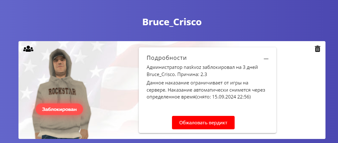 Уже был заблокирован по причине 2.3 администратором, который находился на ситуации.