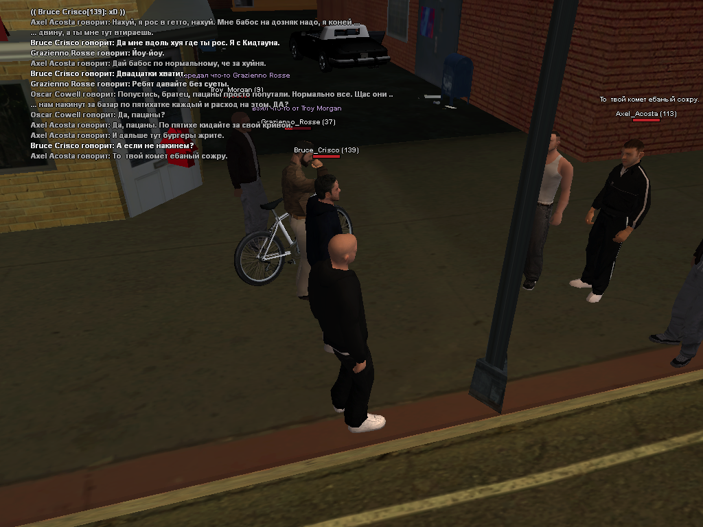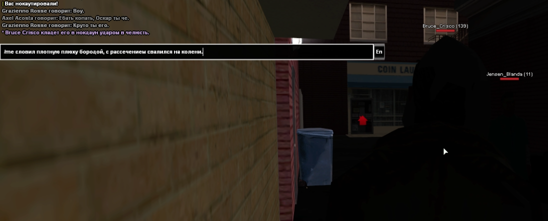 Приезжают три персонажа, в открытую докапываются до игроков на районе, начинают провоцировать на драку. После драки с одним из них (самим топик-стартером жалобы) в меня влетает еще два персонажа, один из них вооружен клюшкой. Поняв, что драка явно идет не в нашу пользу пытаюсь скрываться, но пересекаюсь с Оскаром, который начинает драку. Опасаясь, что после того, как моего персонажа сложат его могут банально забить с помощью этой самой клюшки решил достать оружие и продолжить бегство.