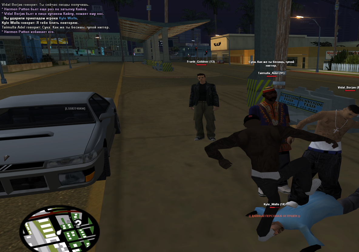 стояли спокойно, вы доебались, как выше было описано. хотели спокойно пообщаться, но вы начали нести хуйню "мы вас отпиздим вы не против?". конечно против, блять, вы серьезно? и это игра? тут вроде реальную жизнь отыгрывают. к двум старичкам подкатывает толпа чернокожих и хочет че-то, ищет причины для шота. нет бы после ситуации разбежаться и отыгрывать страхи,тк после убийства кто-то да будет вас искать. вы решаете вернуться на худ. благо админ нас поднял, и попросил нас с вами более не контачить, основываясь на вашем горящем желании пострелять кого-нибудь.