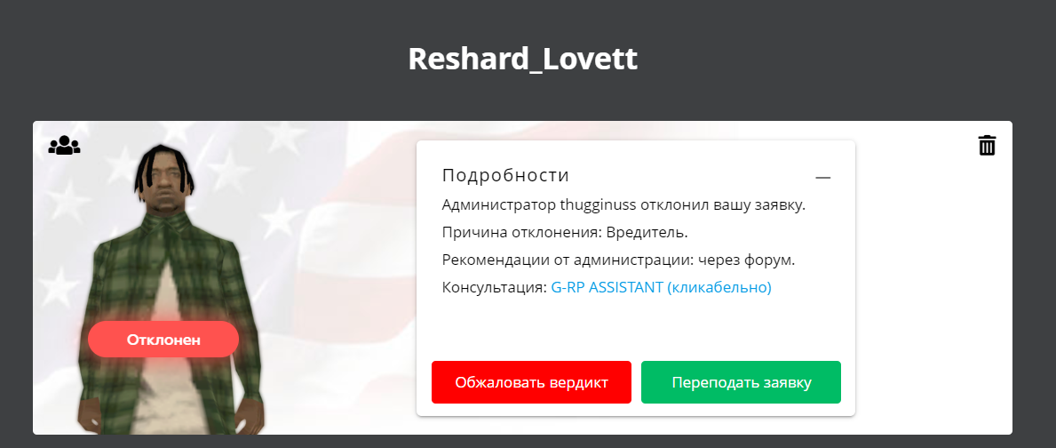 Суть жалобы: пишу за друга жалобу, ему отклоняют персонажа с причиной ВРЕДИТЕЛЬ. 3 заблокированныx персонажа ~ которые вскорее разблокируются.