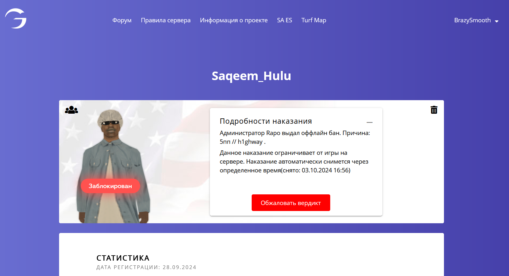 Дата и время наказания/нарушения: 30 Сен 2024