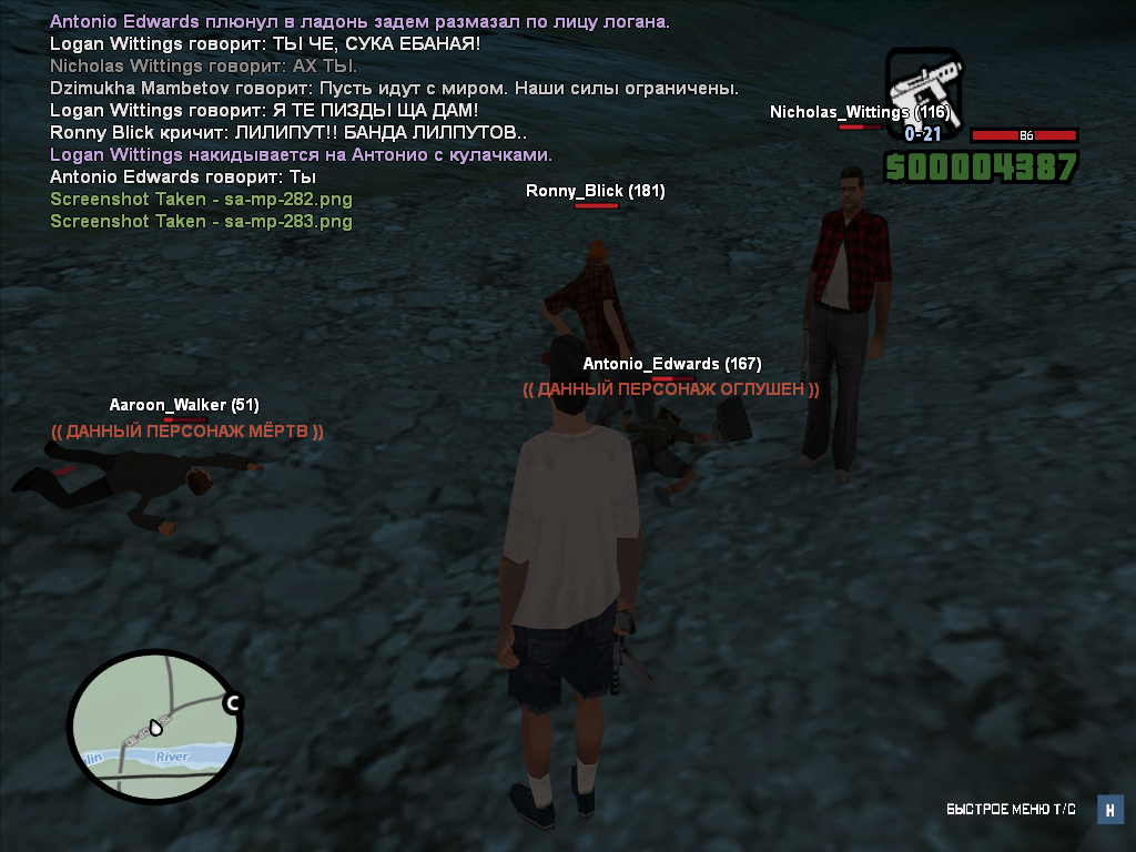 Логично что мы залетели бы, но что мешало тебе сразу скролнуть оружие и заставить его извиняться? Это к примеру. Доеб в том, что конкретно вы не умеете отвечать соразмерно представляемой угрозе и хватаетесь за оружие при первой же возможности, что ведет к тому, что из за таких ребят как вы оружия становится все меньше. Вот скажи мне, что случилось бы если бы вы в драке проиграли? Я не вижу тут вариантов событии которые указывают на смерть, следовательно смысл нас убивать если мы бы не убили? Пригрозить согласен нормально, но ты сначала начал драться а потом стрелять….Я изначально напал на Антонио, что видно видно в моей отыгровке. Антонио буквально решил черкануть мне соплями по лицу, перед этим дав подзатыльника моему соигроку. Я не знаю на что вы надеялись, когда выкидывали данные приколы, но все же.