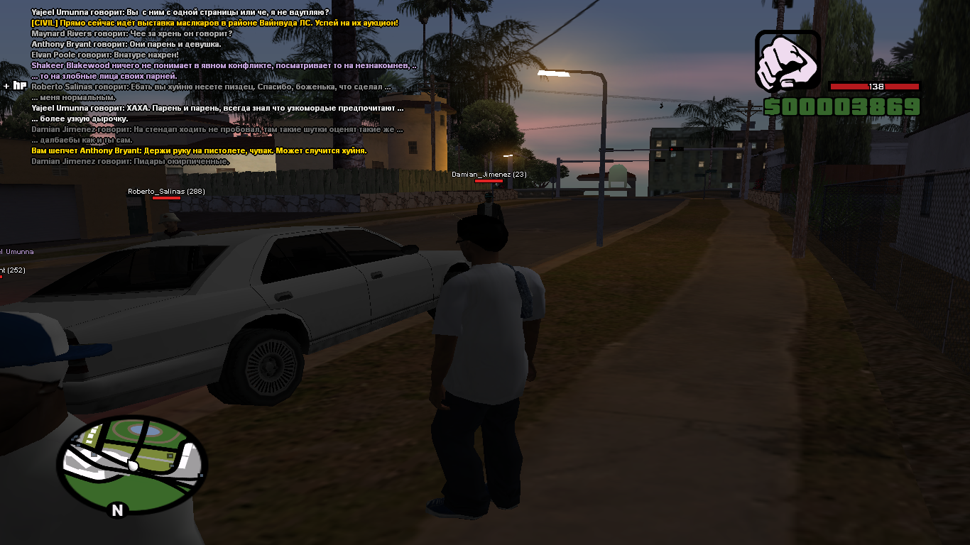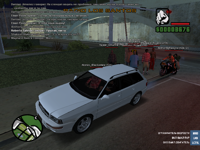 UPD: Седан вновь удаляется с нашего поля зрения, кинув болт на их компашку мы принимаемся чистить район от художеств где следует шот, в принципе по которому жалоба и написана.