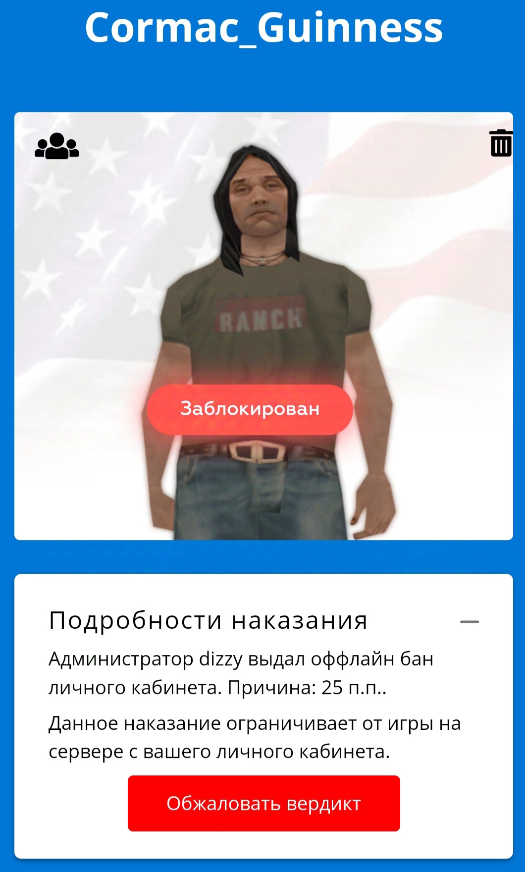 Ссылка на доказательства наказания/нарушения: ниже