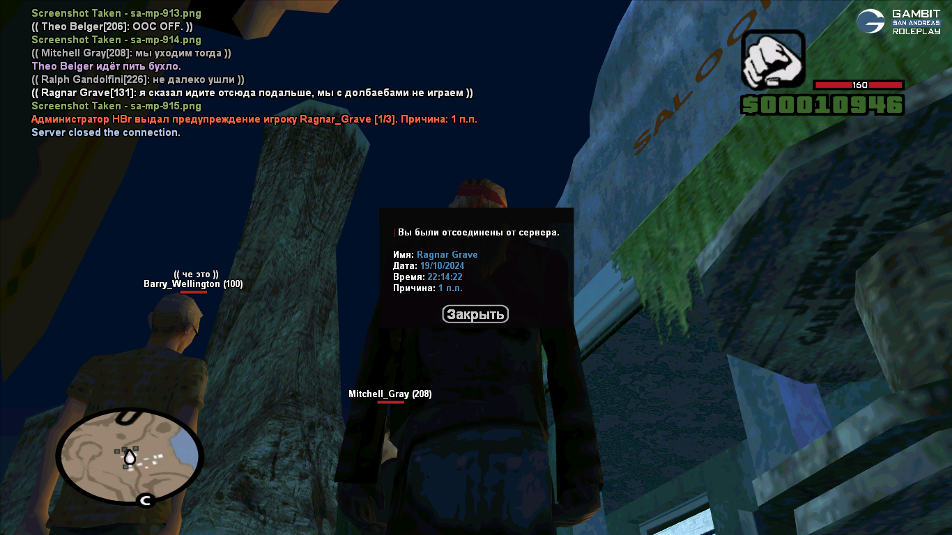 Суть жалобы: Человек при мне лутает мою же лицензионную рифлу из багажника моего авто. Далее передает своему товарищу без отыгровок. Я написал в репорт, затем в /b о том, что это залёт. Поняв, что пахнет жареным, ребятки возвращают рифлу, а я посылаю их нахуй с нашей площадки. Прямым текстом в /b так и написал, что с долбое*ами мы не играем. Далее, вместо наказания реальным нарушителям, мне прилетает варн за 1 пп. Извините, иначе этих существ назвать было в данной ситуации нельзя. По ситуации судите сами, почему я вышел на эмоции и действительно считаю их теми, кем назвал (пруфы):