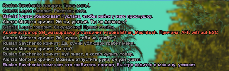 Суть жалобы: С кентами катались по гетто, остановились у мотеля Джефферсона. Кореш с аттачем калаша вылез из тачки чисто пересесть, у меня был в слоте дигл, ну мы чисто катались движняк мутили. Хуй знает почему, но в крышу начал тулить кто-то из двух, на которых пишу жб. В общем моего кента: Ruslan Savchenko, сбрили моментом, мы сьебались с другим корешом и достав ганы двинули их пиздить, собственно легли. Один вопрос - для чего открывать по нам пальбу без каких-либо причин? Мы вышли вдвоем с пушками и это повод тулить сразу? Бред.
