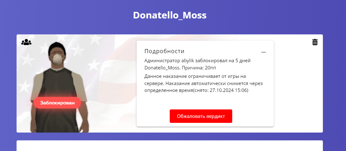 Суть жалобы: Доброе утро. Сегодня получил бан от АБУЛИКА и с вердиктом не согласен. Требую доказать мою неправоту.