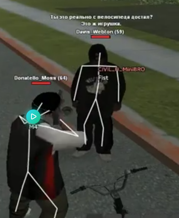 Это повод достать м4 из велосипеда? Расскажешь где она у тебя там в велосипеде лежит? Думаю что нет, он тебя 1 раз ударил (возможно случайно) и ты достал м4, такого не бывает в IRL.