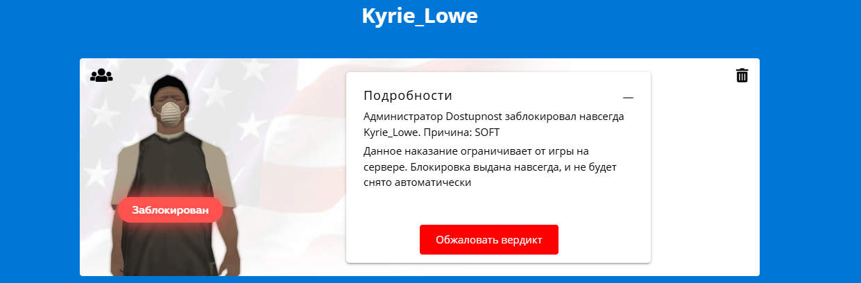 Первые два бана - ошибочные, подумали я падаю под текстуры читами, а там непрогруз. Сняли. Третьий бан твой. Четвертый бан даже не мой, я не знаю чей это аккаунт и со мной он никак не связан. Дай мне свой вк и я отправлю откат туда, так как имгур и ютуб у меня не грузит.