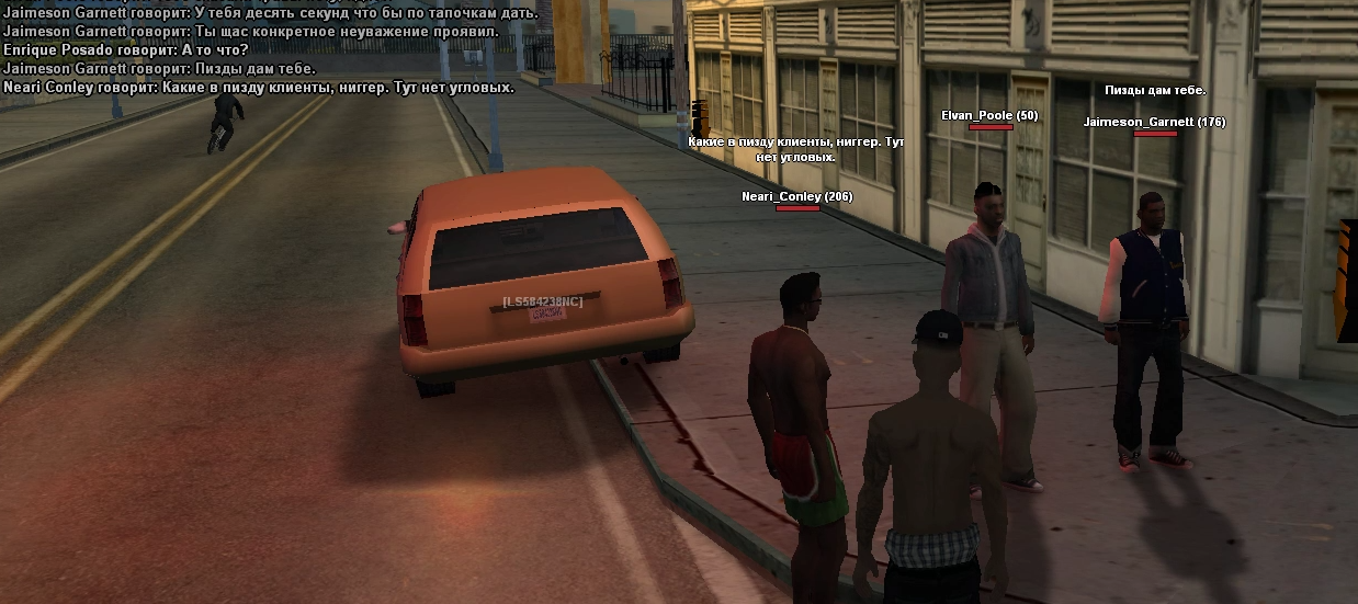 Мы заехали на Джефферсон, но видимо вам спокойно не жилось и вы решили поставить нашу чёткость под сомнение, провоцируя нас словесно. В итоге все дошло до драки, в ходе которой кстати, вы сами первые не пошли на нормальную игру, пытаясь закинуть нашего паренька в стадию, хоть и сто раз было написано, что драться нужно без стадий, но ваши потненькие от бьющего в голову адреналина ручки то , к сожалению, чешутся. Ваша толпа (примерно 8-12 человек, точно говорить не буду, что то в этом промежутке) начали прямо угрожать нам, теперь уже физически...