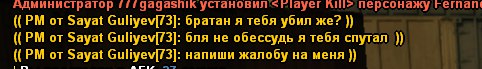 привет, я Саят. Да я действительно его спутал. По мне русский никнейм с кольта стрелял, и уехал, а я в это время друга топикстартера забивал кастетом. Потом его забрал тс, я чекнул его пейм - увидел, что нация русский (а он в маске был) и подумал, что это стрелок. В следствии убил его, это моя ошибка заблокируйте меня, чтобы вернуть игроку оружие, я тут неправ, поспешил.
