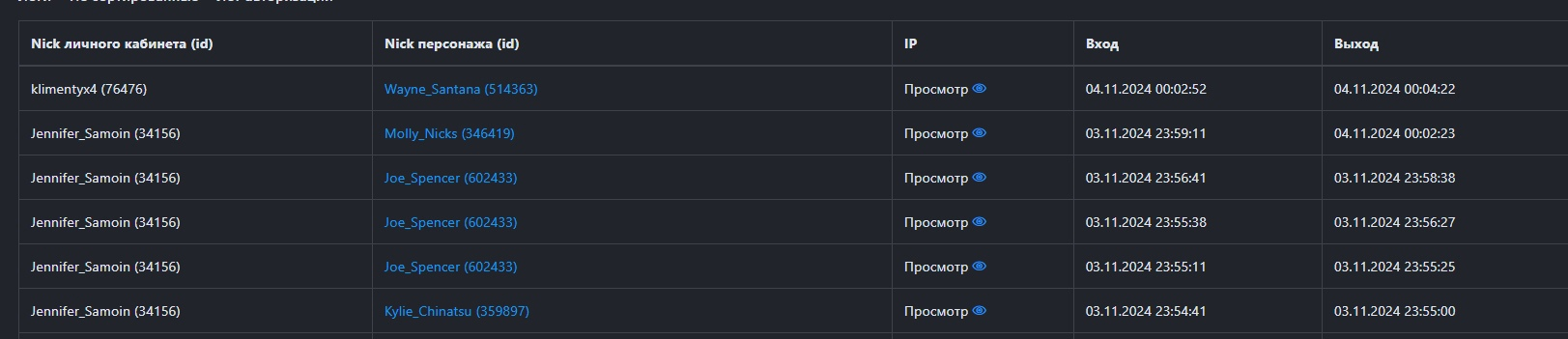Проверяющим, подметить айпи захода Joe Spencer и Wayne Santana, разные лк один и тот же айпи
