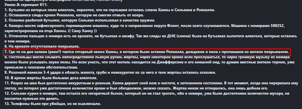 Суть жалобы: Cчитаю, что вместо полноценного расследования, уважаемый убойный отдел ЛСПД, занимается OOC игрой. За два дня расследовать убийство - просто нереально, особенно, если отпираться от тех улик, что были оставлены в топике на ЦК. Чехол с гитарой и всем остальным - покоится на дне реки и скорее всего был бы выброшен течением в открытый океан, но совершенно чудесным образом, очень удачно, оказывается в лапах детективов по особо тяжким. Видимо, всплыл, сам по себе, какой-то невероятной магией. То есть, единственное, что у них фактически было, как материал - отпечатки пальцев. Но глупо на основании одних лишь отпечатков проводить арест, это глупо.