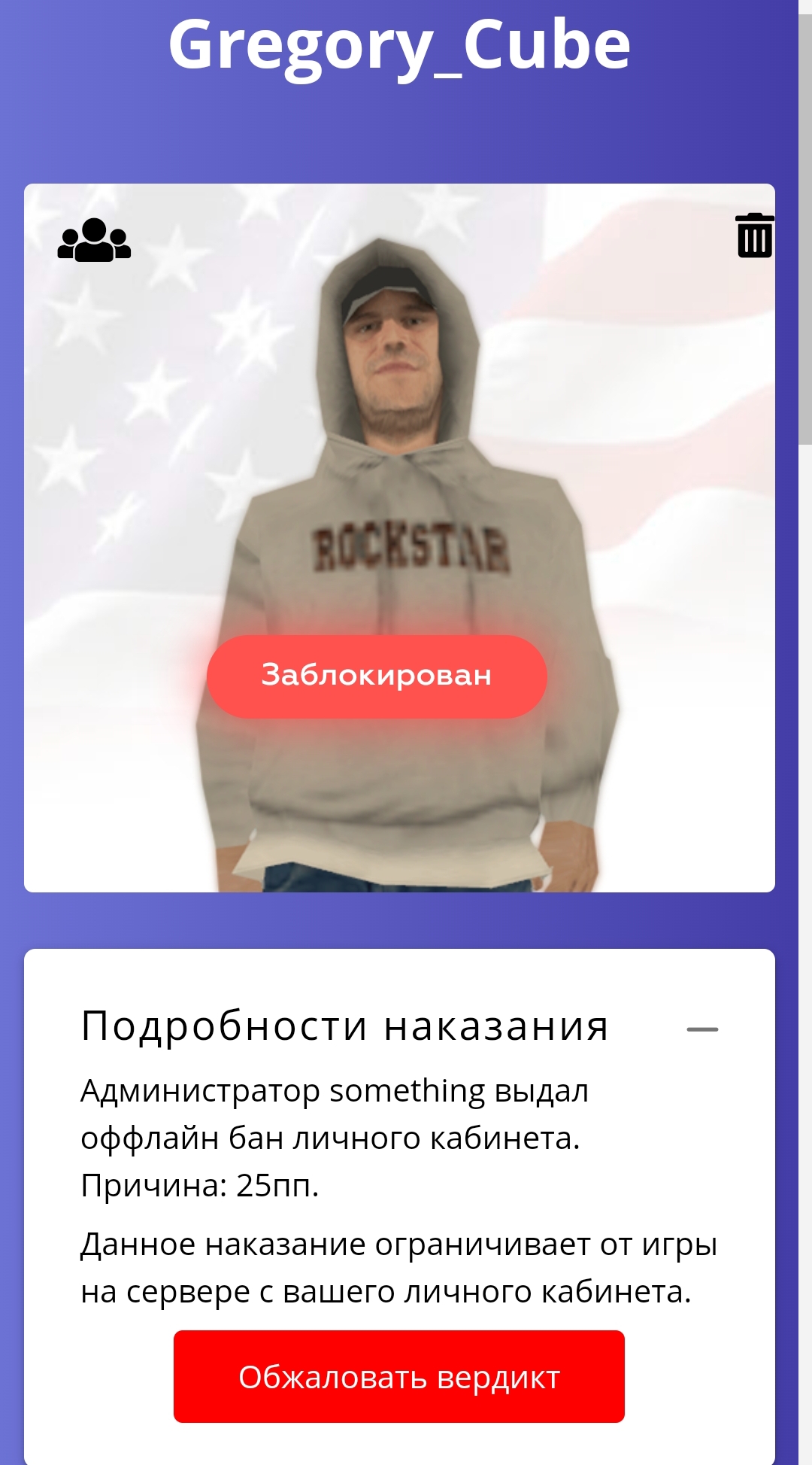 Ссылка на доказательства наказания/нарушения: ниже
