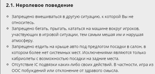 И все это сопровождается данным правилом, последний пункт. Посиди и подумай теперь как это выглядит со стороны, может быть и смешно было в игре, творить всякое, что аж коп уехал от вашего 'Роле Плея" но со стороны это смотрелось ужасно)