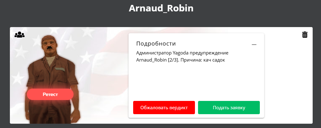 Суть жалобы: Отошёл я, оставил аккаунт в садке осталось там немного прихожу вижу предупреждение впаяли, первый раз слышу, что-бы сразу предупреждение давали я не знал в целом что предупреждение выдается, я думал кикают и всё, ну или как минимум было бы логично сначала кикнуть а не сразу предупреждение давать. Прошу убрать предупреждение.