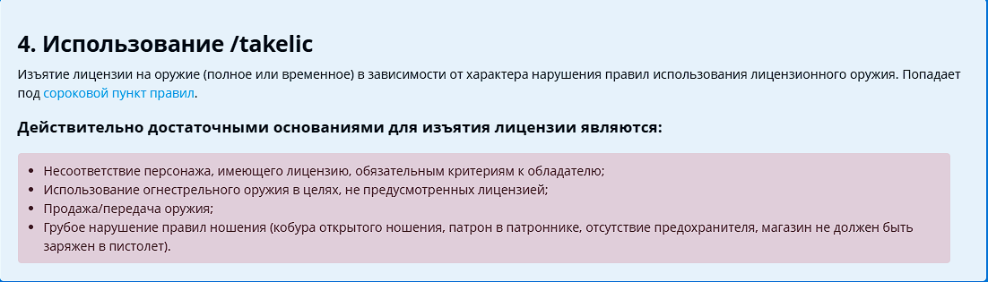 Суть жалобы: Добрый вечер, зашла вечером поиграть в сампик. Поехала по джибаю в Лос-Сантос с Сан-Фиерро, прямо перед мостом за мной ехал коп с мигалкой, причём просто так поехал, чтобы я что-то нарушила, вообще нет, ехала на машине BF injection она больше 75 не разгоняется. Потребовал остановится только в городе, естественно, я поехала дальше, персонаж по квенте подросток "игнорирующий" закон. В итоге, мы вернулись с ним обратно к мосту, мой персонаж выбежал из машины и пересел в машину к подруге, мы не поехали потому, что приехали другие копы и отправили вертушку кружить над нами. Ладно понимаю, собрали весь наряд против девочки-подростка. Персонаж не сопротивлялся вышел из машины и спокойно дал себя обыскать. В итоге эти хранители закона выявили, что оружие (лицензированное) хранится, не правильно, и изъяли его (плюс изъяли лицензию). На вопросы персонажа, за что задержали ответили, что сопротивление аресту. Какому аресту? За что аресту? У меня персонаж вообще миролюбивый, с федералами старается не пересекаться потому, что окружение не совсем правильное, но сам перс нечего не вытворяет.