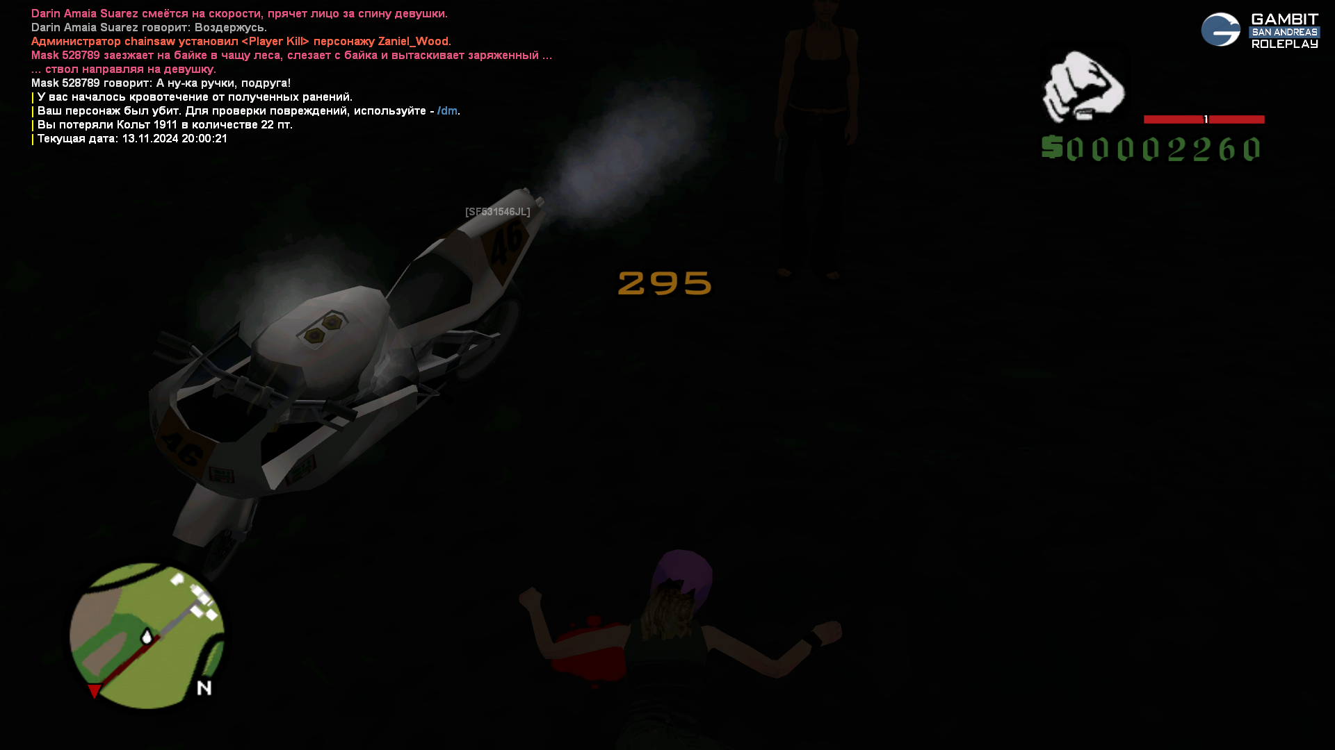 Суть жалобы: Здравствуйте. Буквально пару минут назад пытался провернуть ограбление в чаще леса. Слезаю с байка наставляю оружие на вышеупомянутого игрока и говорю поднять той руки. На что та без единой отыгровки достаёт пистолет и дмит меня. После того как я оказался в стадии только после этого она кидает отыгровку что резким движением вытаскивает пистолет и убивает меня. На мой взгляд это сто процентный дм и паур гейминг. Это вторая моя жалоба. Так как первая была отклонена некомпетентным администратором.