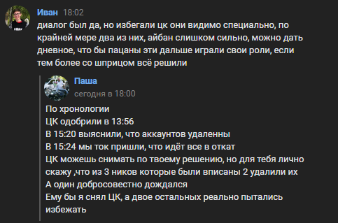 Нам с соигроком сказали что ситуацию откатили, и фракция уходит в архив. Мы же в свою очередь, решили зарегнуть новых, для новой фракции, а так как ситуация в откате, мы оба не думали что у вас в мыслях пройдёт про уход от цк.